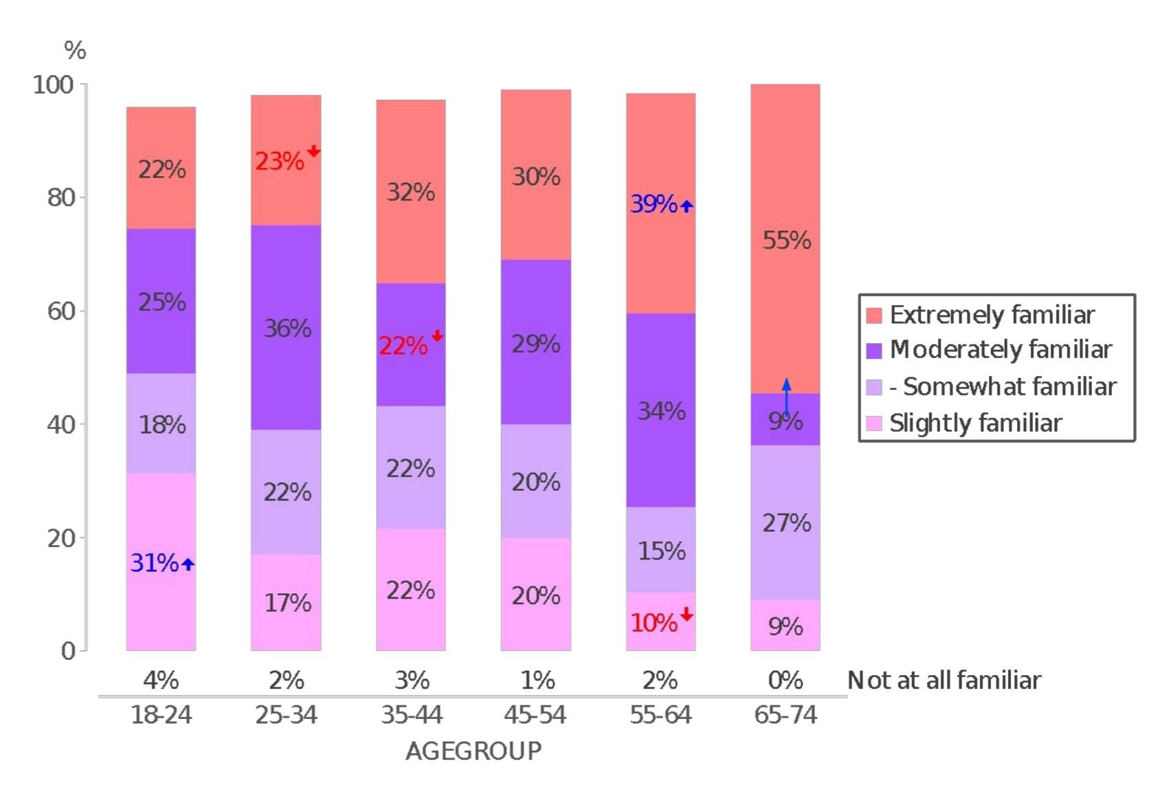 In brand recognition among the 18-34 age group